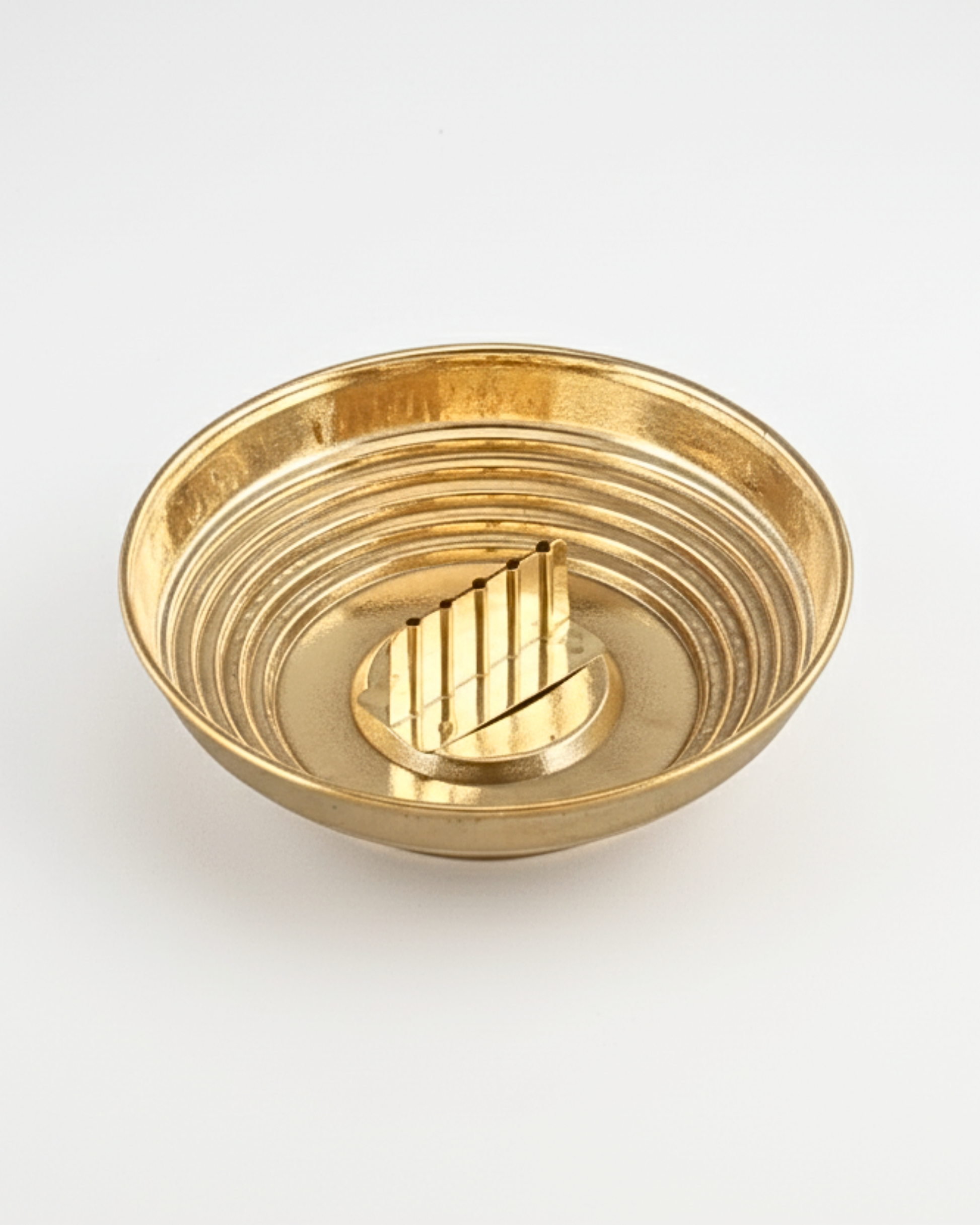 This pure brass agarbatti stand is designed for daily pooja and calm spaces, with a clean, minimal form and a built-in ash catcher tray that keeps surfaces tidy.