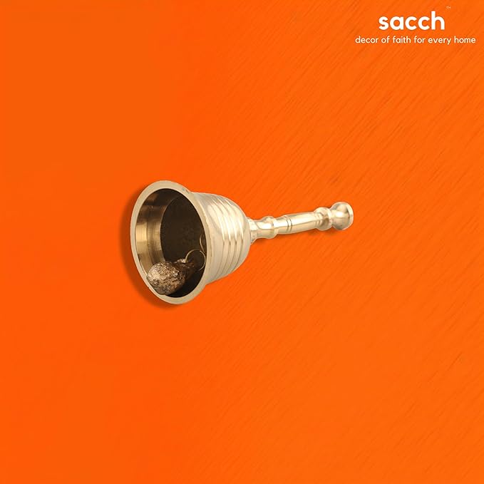 Elevate your pooja room with this exquisite brass bell, a timeless symbol of devotion and spirituality. Meticulously crafted from high-quality brass, this bell exudes an aura of elegance and reverence. Its captivating design, featuring intricate patterns and a slender stem, adds a touch of sophistication to your sacred space. With each gentle ring, the melodious chime resonates, creating an atmosphere of serenity and tranquillity. Ideal for use during puja rituals, this brass bell serves as a harmonious accompaniment, enhancing your spiritual connection. Measuring 20 cm in height, it strikes the perfect balance between aesthetic appeal and functionality. Embrace the essence of tradition and grace with this remarkable brass bell, a cherished addition to your pooja room decor.