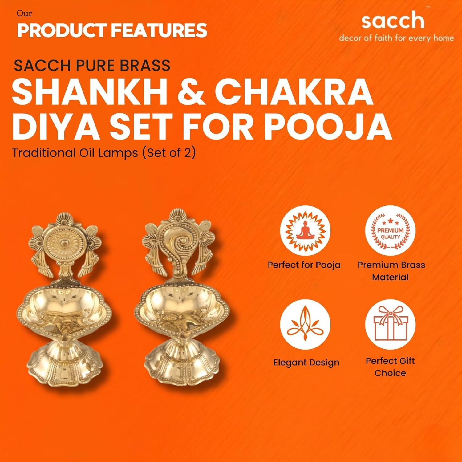 Made from high-quality brass, each diya features the sacred Shankh (conch) and Chakra (wheel), symbols of purity, protection, and divine energy.